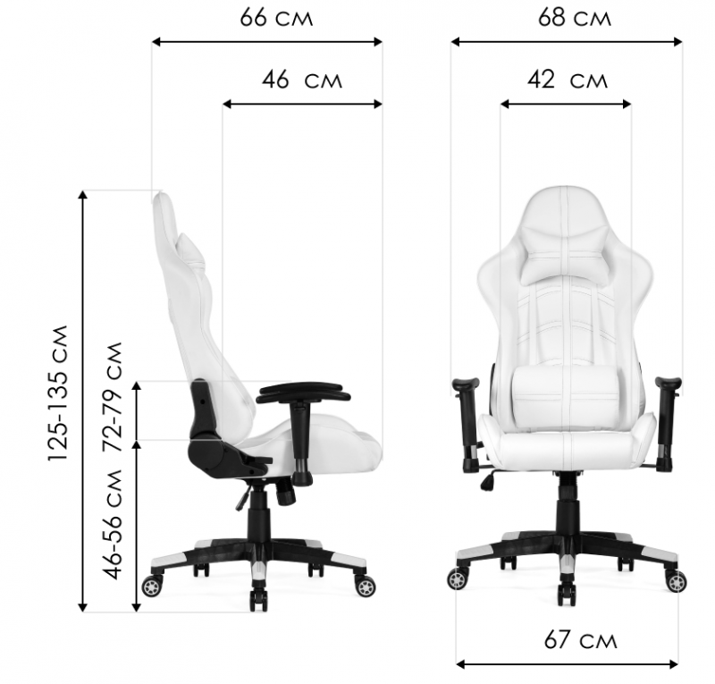 Высота подлокотников: 72 - 79 см. Диаметр крестовины: 67 см.
