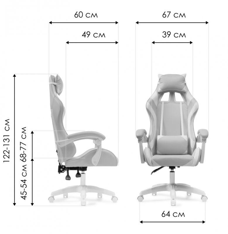 Высота подлокотников: 68 - 77 см. Диаметр крестовины: 64 см.